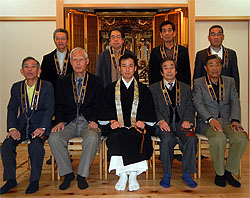 | 杉本隆男筆頭総代(住職の右) 大東要介総代(住職の左)